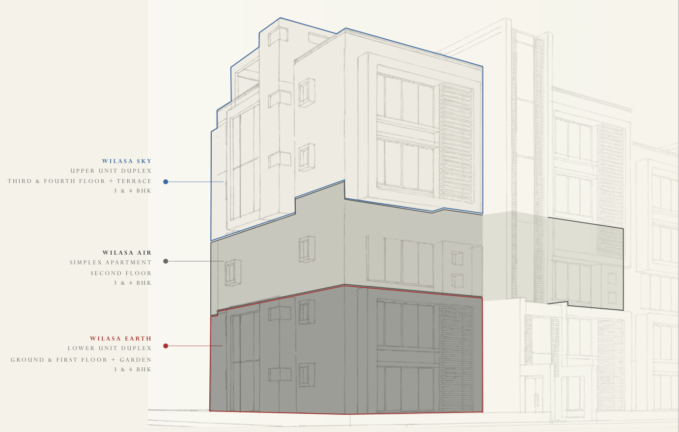 Get a sense for the kinds of floor plans we have. The plans shown below are indicative of the standard 3BHK or 4BHK units but each of the units may vary from this standard layout depending on their location within the property.